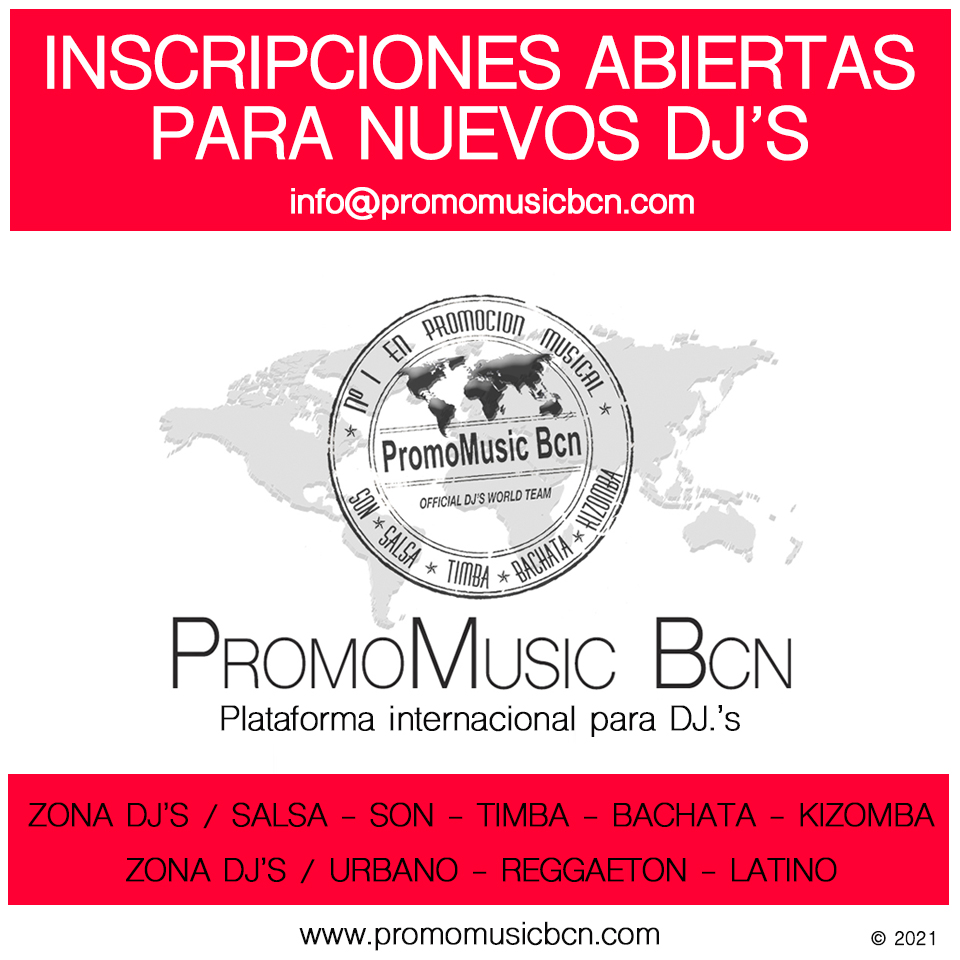 PromoMusicBcn es una plataforma digital online dedicada a la captación y difusión de las últimas novedades musicales, en los géneros Salsa, Son, Timba, Bachata, Kizomba, Urbano y Latino. Acabamos de abrir las Inscripciones para dj’s de este año 2021.